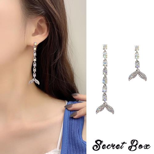 【SECRET BOX】韓國設計S925銀針美鑽人魚尾巴不對稱鑽鍊耳環