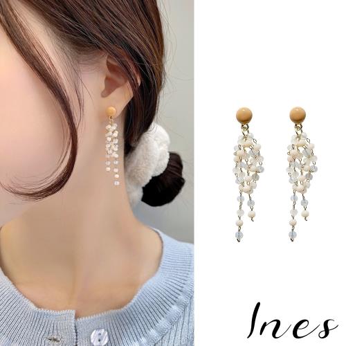 【INES】韓國設計S925銀針復古彩色流蘇串珠造型耳環