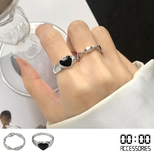 【00:00】韓國設計黑桃心個性戒指兩件套組