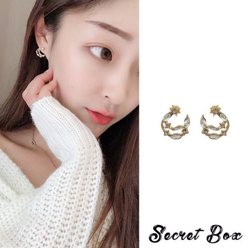 【SECRET BOX】韓國設計S925銀針小巧璀燦星月鋯石造型耳環