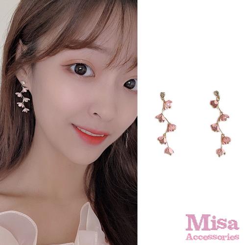 【MISA】韓國設計S925銀針甜美流蘇粉色花瓣造型耳環