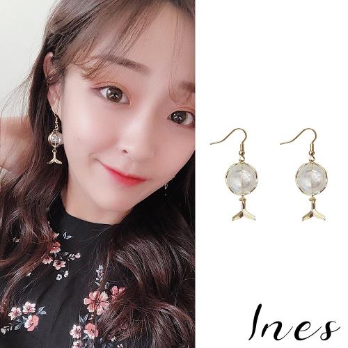 【INES】韓國設計S925銀針法式復古人魚魚尾玻璃泡泡造型耳環