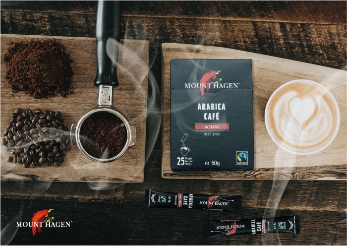Mount Hagen公平貿易即溶咖啡經冷凍乾燥技術處理,將100%阿拉卡比咖啡豆與柔順、香味濃郁的口感融合,這些咖啡豆都是經過精心挑選,選擇只純粹從事栽種、並為他們勞工提供了安全的社會和經濟環境的種植者,這樣做,Mount Hagen可協助支持環境的永續性。