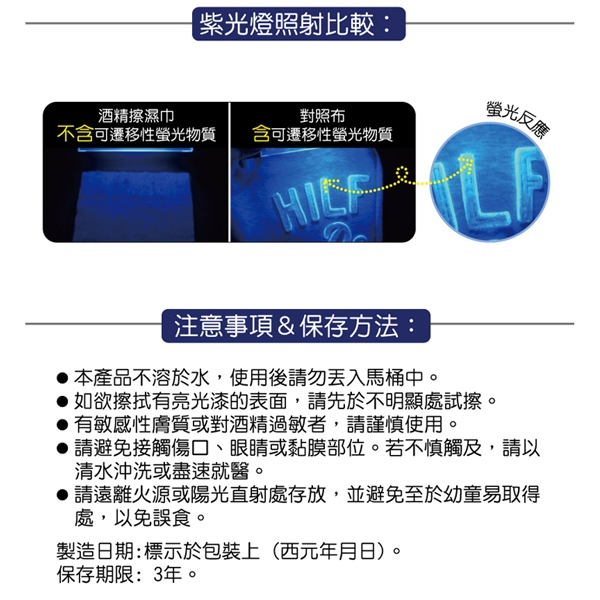 5.本產品不溶於水,使用後請勿丟入馬桶中。