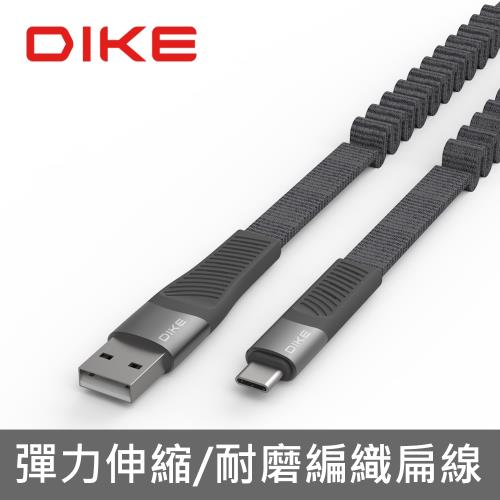 DIKE 彈簧伸縮編織Type-C-1.2M快充扁線 DLC712GY