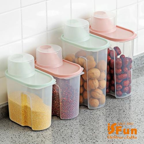 iSFun 廚房收納 附量杯透明五穀雜糧密封罐 2.5L+1.9L