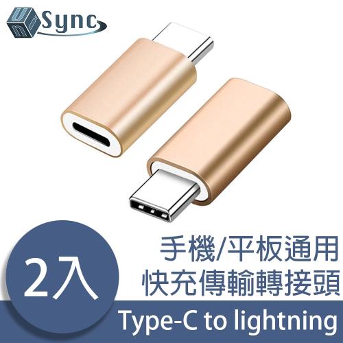 UniSync 蘋果專用Type-C轉lightning母快充傳輸轉接頭 金/2入組