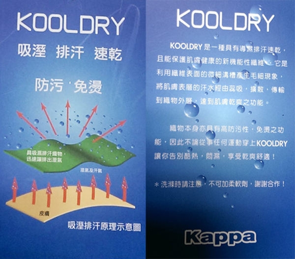KAPPA創立於1967年,來自於義大利北方紡織重鎮Torino(杜林). KAPPA在義大利文中,是為國王之戀,故KAPPA對於品牌發展的企圖 及品質的追求也盡顯於此.誕生於文藝復興起源於義大利的KAPPA, 在服飾上灌注了歷史傳承的自由奔放感與米蘭,威尼斯,佛羅倫斯等 令人迷戀氣息之地,有著相同的強烈吸引力,翻開義大利字典, 字母K開頭的第一個單字,也正是[KAPPA],這也代表著義大利視[KAPPA] 為最高尚尊貴.[KAPPA]更加入歐洲文藝復興的精神,設計出象徵 ”獅子”的標誌,除了運動休閒的品質要求外,更強調王者至尊, 唯我獨大的風格 而KAPPA LOGO的意義,就是KAPPA相信男女可以共同分享運動的樂趣, 無論在何處,雙方都可以互相支持以達成目標,男女在運動及生活上都是 平等的,故而設計此背靠背的標誌