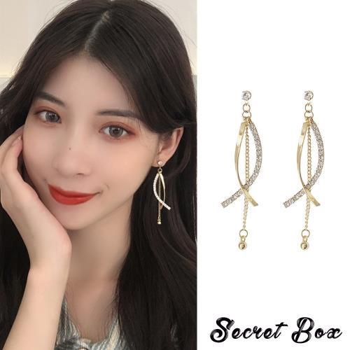 【SECRET BOX】韓國設計S925銀針華麗璀璨交叉美鑽墜鍊耳環