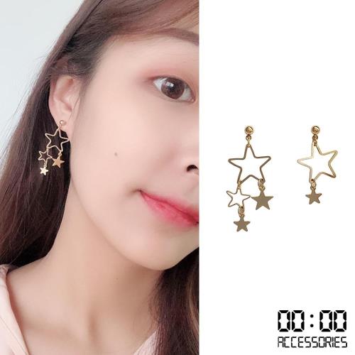 【00:00】韓國設計S925銀針縷空不對稱星星線條造型耳環