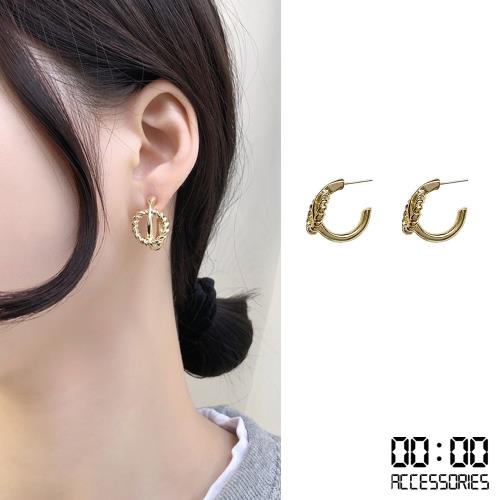 【00:00】韓國設計S925銀針復古金屬C形圈圈造型耳環 (2色任選)
