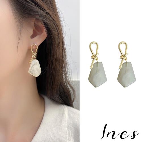 【INES】韓國設計S925銀針幾何冰晶繩結造型典雅耳環 (2色任選)