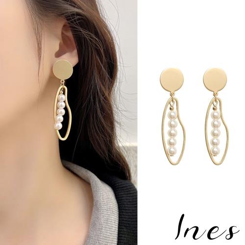 【INES】韓國設計S925銀針不規則金屬線條復古珍珠耳環