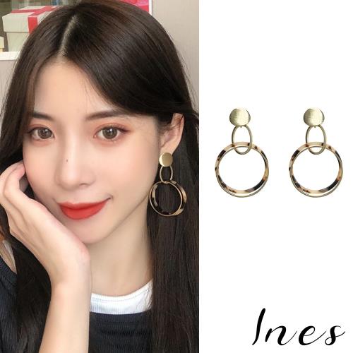 【INES】韓國設計S925銀針復古縷空玳瑁圈圈金屬耳環