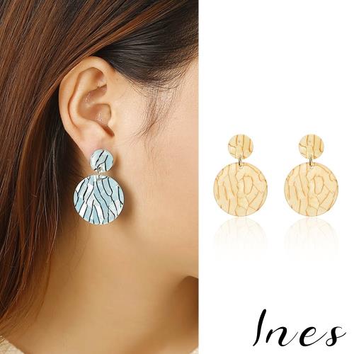 【INES】法式復古裂紋圓片造型耳環 (3色任選)