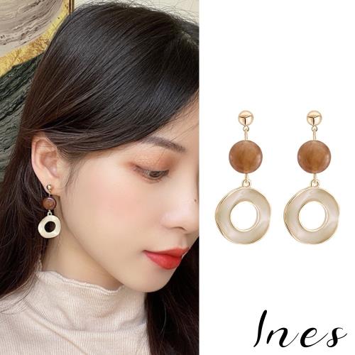 【INES】韓國設計S925銀針復古木珠滴釉圈圈造型耳環