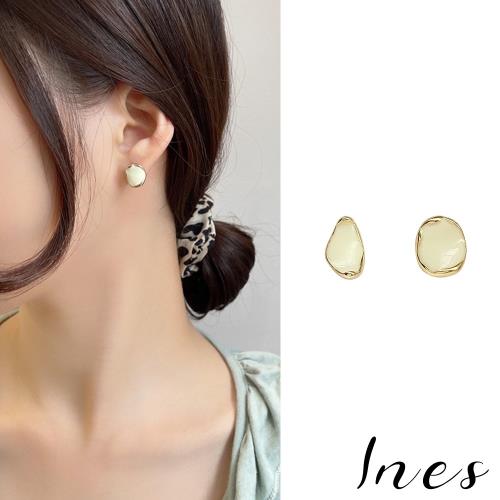 【INES】韓國設計S925銀針不對稱簡約滴釉造型耳環