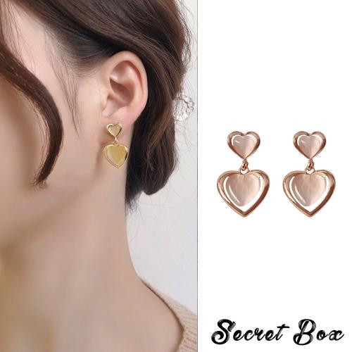 【SECRET BOX】韓國設計S925銀針甜美貓眼石愛心氣質耳環 (2色任選)