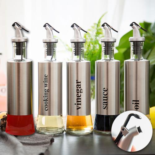 EZlife 不鏽鋼玻璃可控油量 300ml密封油壺