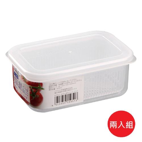 日本製 Nakaya K595-1 長方形保鮮盒(內附瀝網) 600mL-2入組