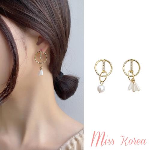 【MISS KOREA】韓國設計S925銀針不對稱珍珠耳墜造型耳環