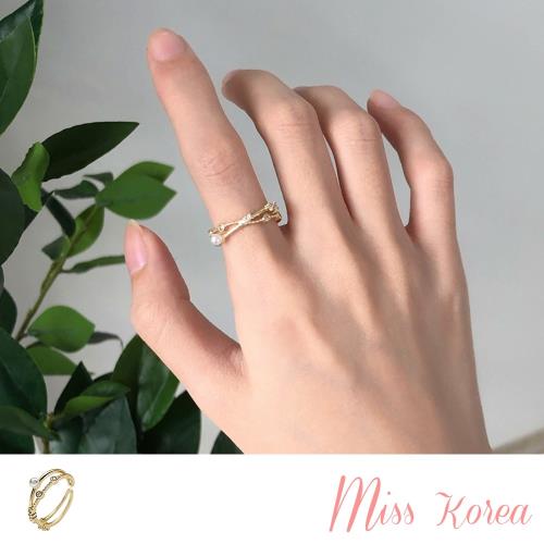 【MISS KOREA】韓國設計微鑲美鑽交叉珍珠開口戒
