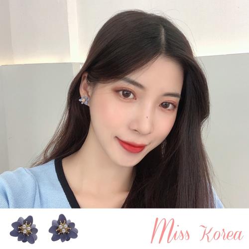【MISS KOREA】韓國設計S925銀針紫色立體雙層花瓣珍珠花芯造型耳環