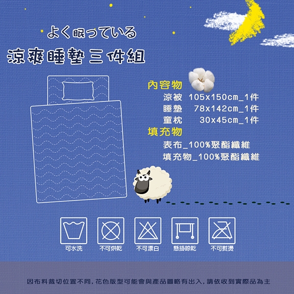 可水洗/不可烘乾/不可漂白/勿使用強力漂白清潔劑/浸泡時間請勿超過20分鐘/建議可放入大型洗衣袋後再清洗