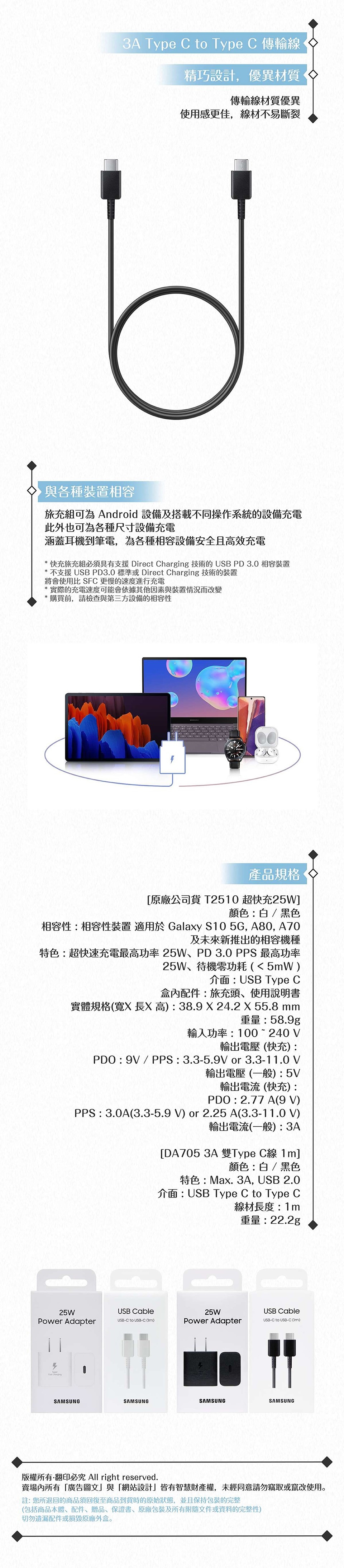相容性:閃電快充高功率 25W,適用於 S10 5G, A80, A70, 和未來新推出的相容機種