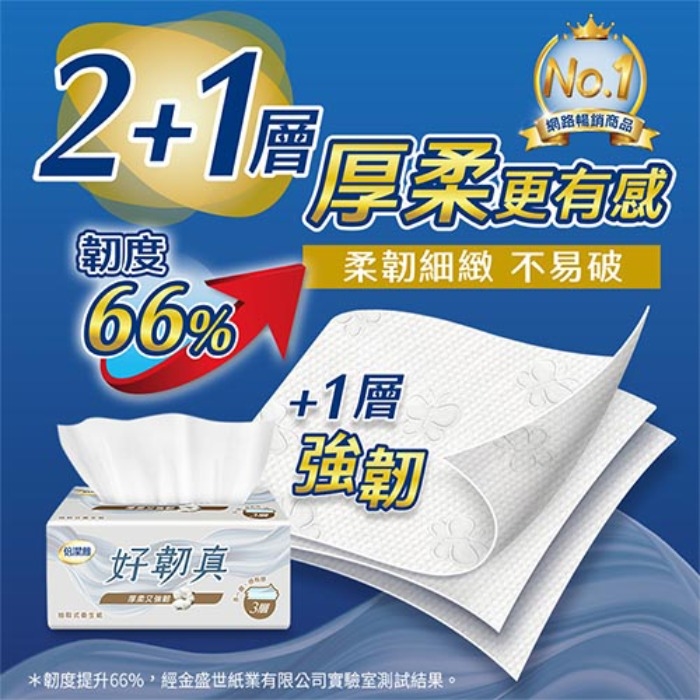 +1層強韌,韌度提升66%,不易破,升級是讓您告別滿手紙屑的時代