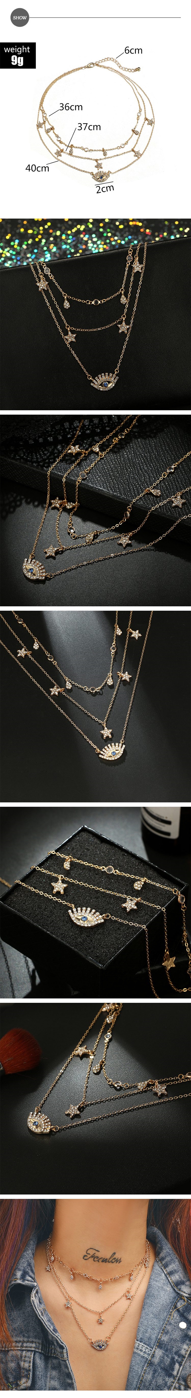 【00:00】歐美時尚水滴美鑽閃耀星星眼睛元素多層次項鍊