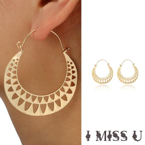 【I MISS U】復古民族風幾何三角半圓縷空造型耳環 (2色任選)