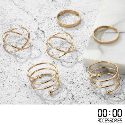 【00:00】歐美復古幾何圈圈造型關節戒6件戒指套組