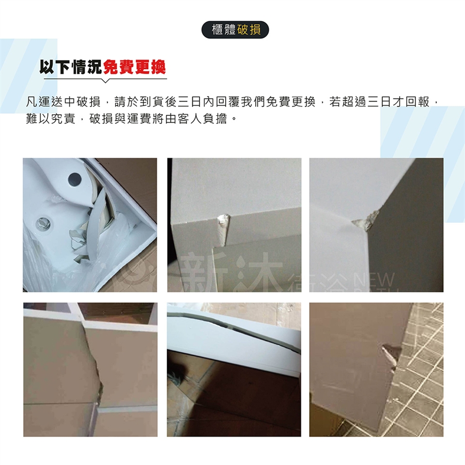 ※若出現商品瑕疵,請於七天內通知我們進行換貨,但換貨的安裝費用、拆卸費用、水電費用,不在我們的服務範圍中。