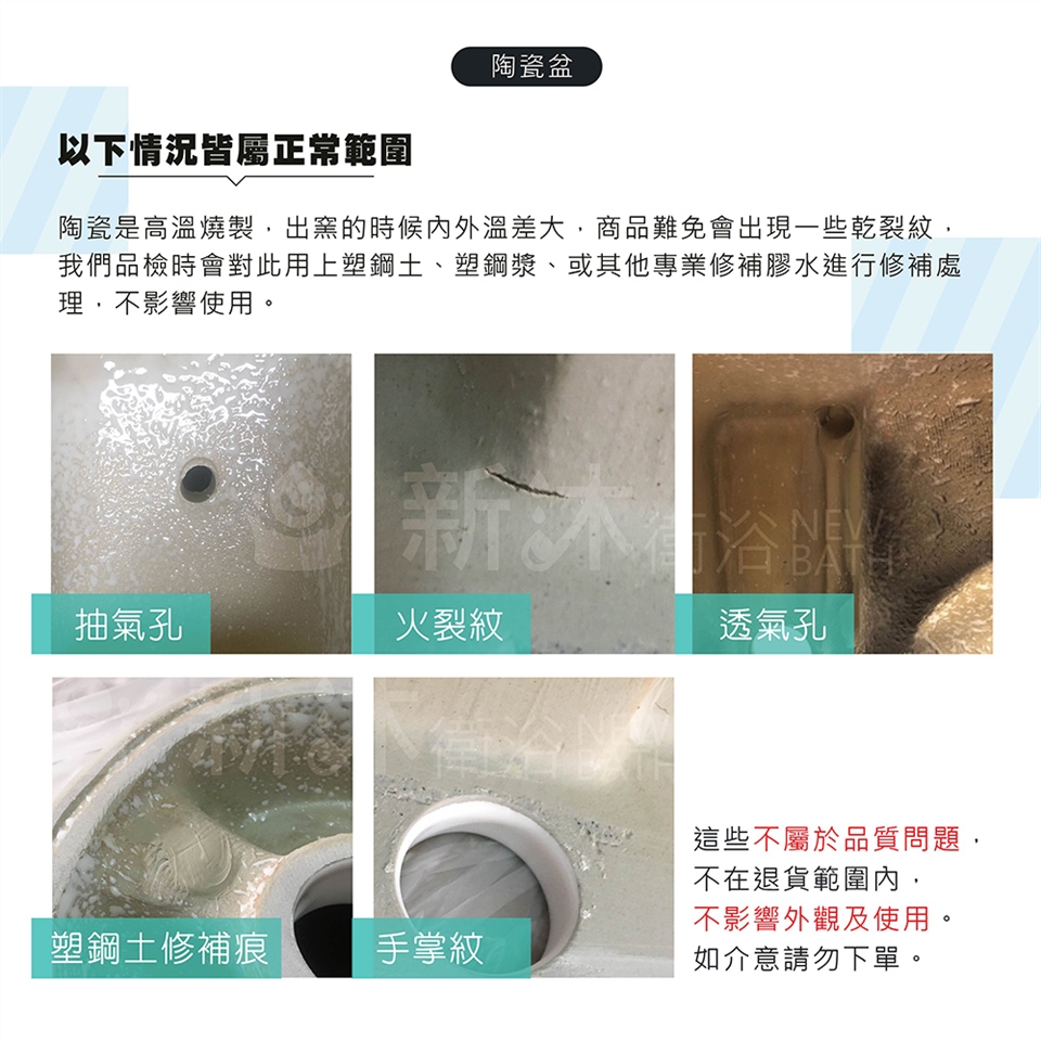 ※若安裝後才回報盆破裂,無法補寄,人為因素破損不在保固範圍內,需自行負擔商品費用與運費。