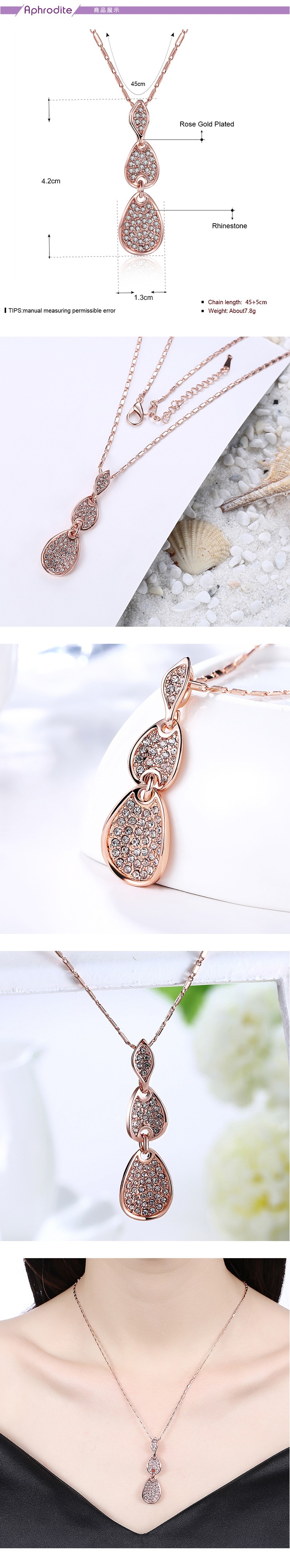 【Aphrodite 愛芙晶鑽】古典流線美鑽水滴串鍊造型項鍊(玫瑰金色)