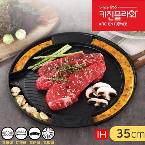 韓國 Kitchen Flower 韓式圓形烘蛋排油35cm IH版不沾烤盤(電磁爐、IH爐型專用)