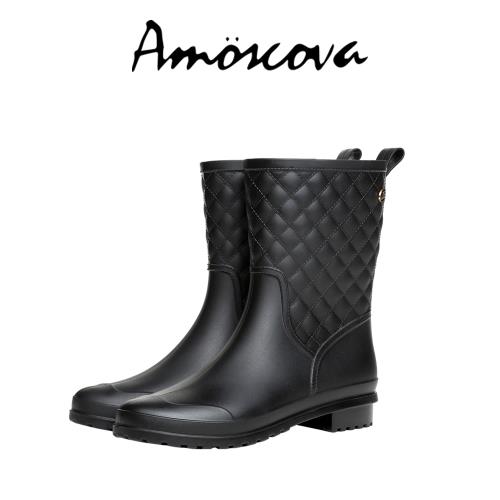 雨天必備 現貨激殺↘【Amoscova】經典狂銷 菱格中筒雨靴1611
