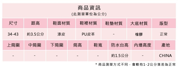 2.鞋類商品依功能及用途之不同,鞋底各有其止滑係數之個別不同,使用鞋類商品請用於正常平坦之路面,非雨鞋或雨靴類商品,請避免穿著於下雨濕滑路面上行走。