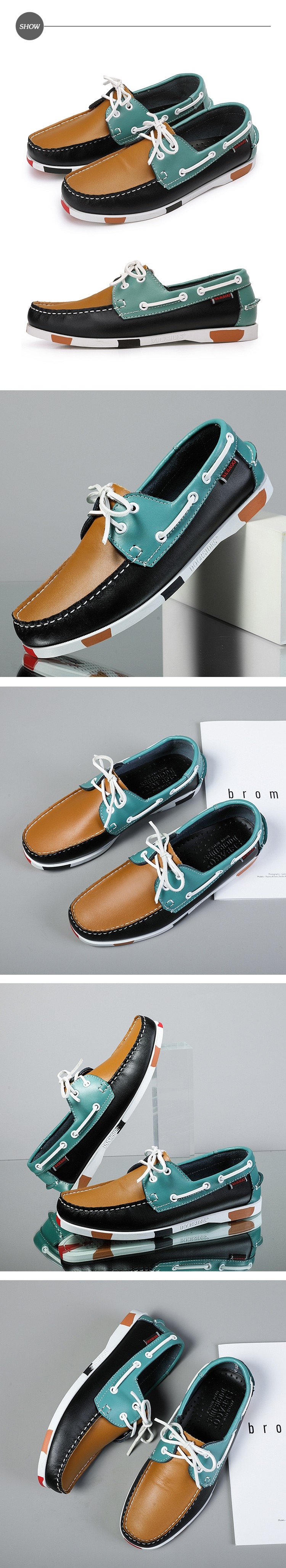 【Kiron】休閒鞋帆船鞋/潮流經典時尚商務拼接綁帶造型帆船鞋 -男鞋 E款迷彩黑綠黃