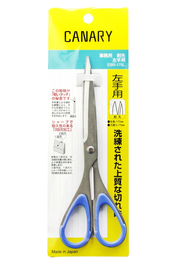 ●【品名】日本長谷川刃物CANARY左手專用辦公剪不銹鋼剪刀ESR-175L(左撇子用;刃長75mm)文具剪居家事務剪