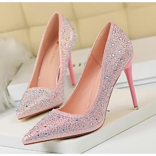 【Sp house】時尚宴會閃亮彩鑽尖頭細高跟鞋(7色各2種跟高可選)