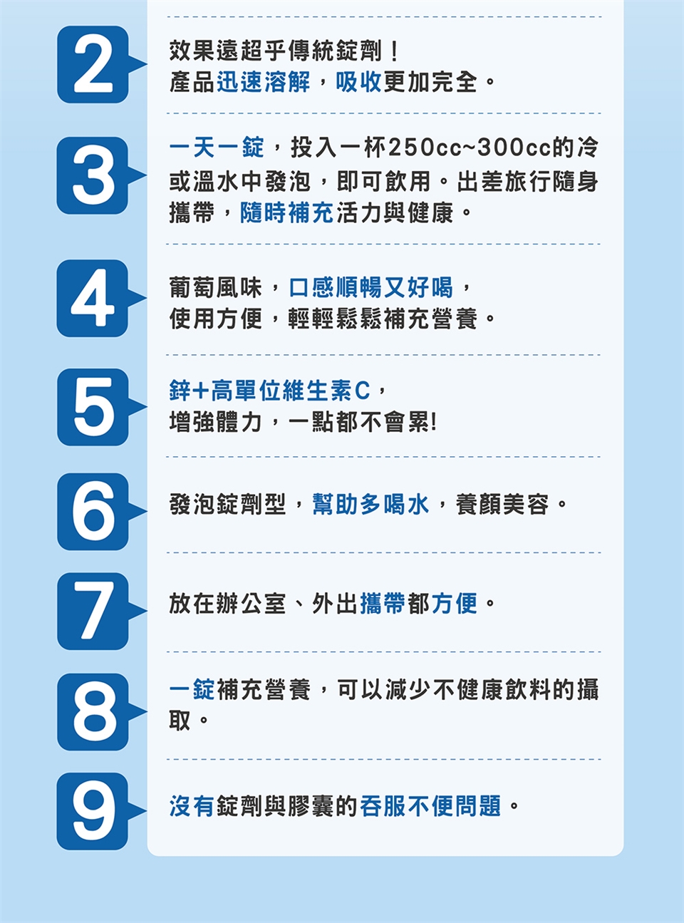 ‧發泡錠請勿直接吞食。