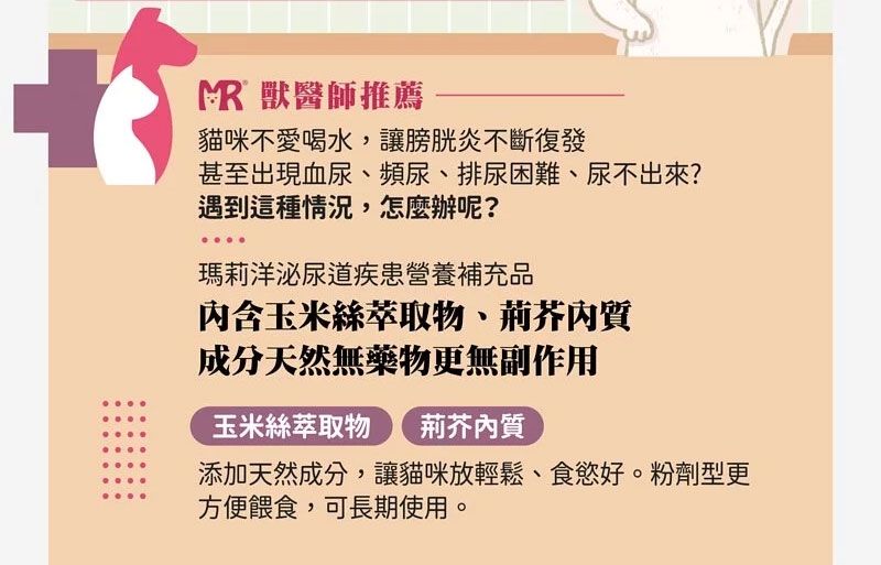 本產品為寵物用營養補充品,若有其他疾病請遵循獸醫師指示使用。
