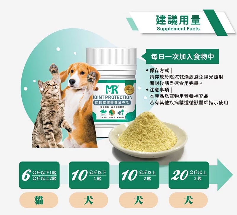 本產品為寵物用營養補充品,若有其他疾病請遵循獸醫師指示使用。