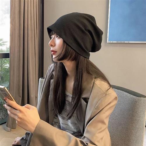《Caroline》日系季節新款ins原宿風街頭純色針織帽包頭帽百搭黑色帽子男女帽 73549