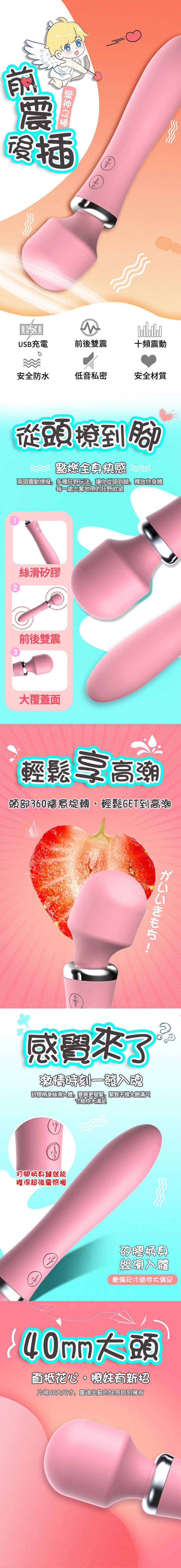 產品品名:愛神 10段變頻震動充電矽膠AV按摩棒-粉