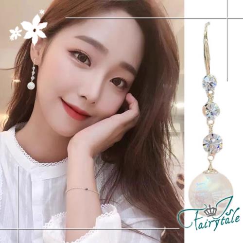 【伊飾童話】高雅珍珠*水鑽垂墜925銀針耳環