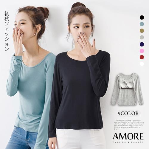 AM艾莫兒 莫代爾舒棉BRA多色長袖上衣9色M-XXL