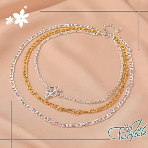 【伊飾童話】個性一字扣*金銀粗麻花中性三層項鍊